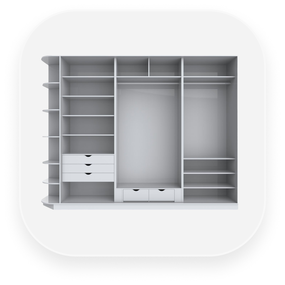 Наш дизайнер расскажет про возможные формы, покажет каталог материалов и функциональных элементов наполнения, даст практические рекомендации. Совместно с ним вы по шагам сможете создать удобную гардеробную, которая идеально впишется в дизайн помещения.